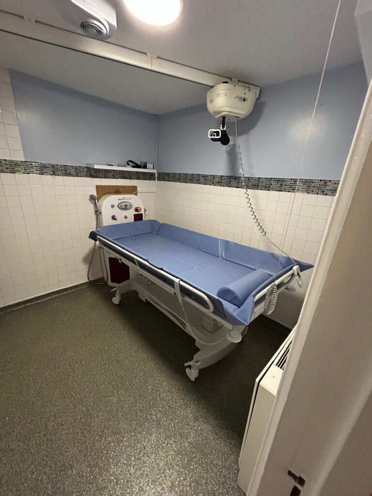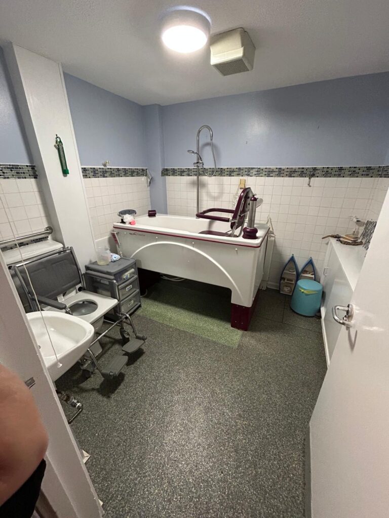 The vacancy is a ground-floor bedroom specifically adapted for individuals with physical support needs. The room is fitted with a ceiling tracking hoist and includes fitted wardrobes.
